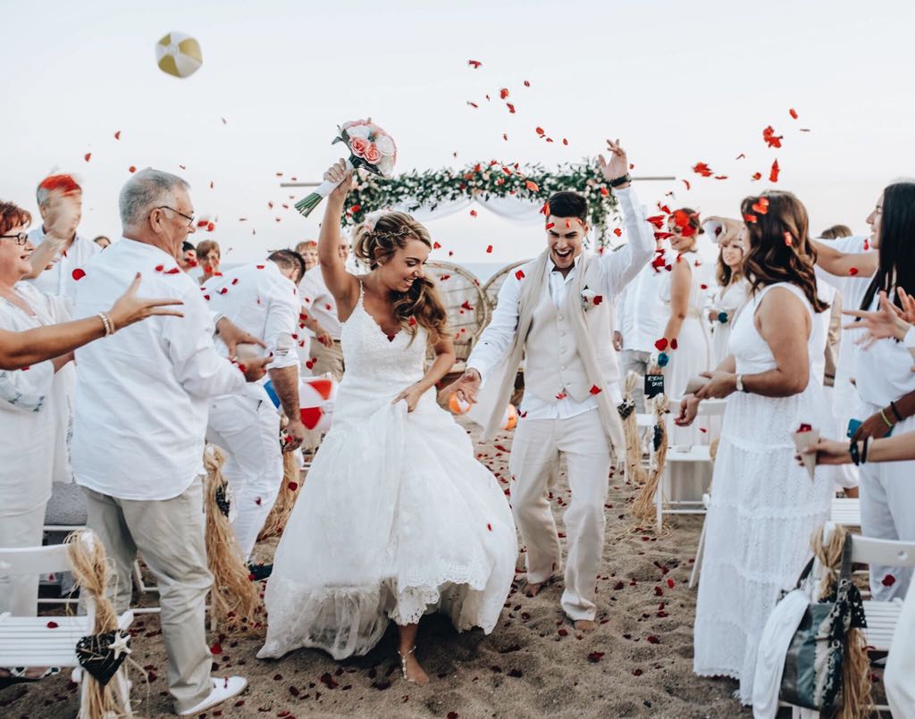 Bodas en la playa: Bienvenidos a nuestra galería de momentos inolvidables en DBlanc. Aquí encontrarás una selección de fotos reales de ceremonias mágicas en la arena, banquetes frente al mar y las mejores fiestas de Barcelona. Inspírate con nuestras parejas y descubre por qué somos el lugar ideal para un “sí, quiero” único y con estilo mediterráneo.
